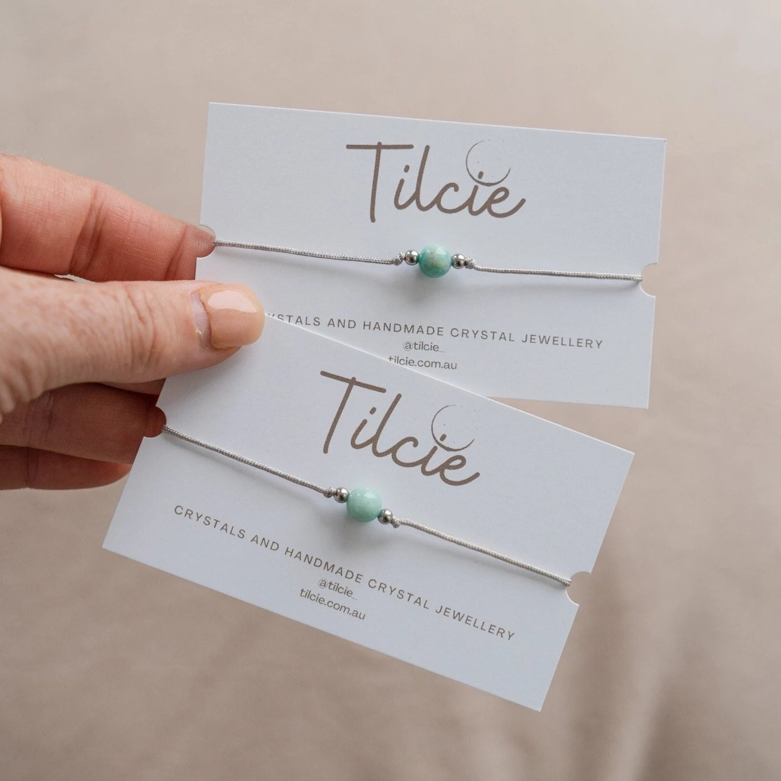 Krystal 5 - Amazonite Crystal on silver adjustable cord and small silver beads