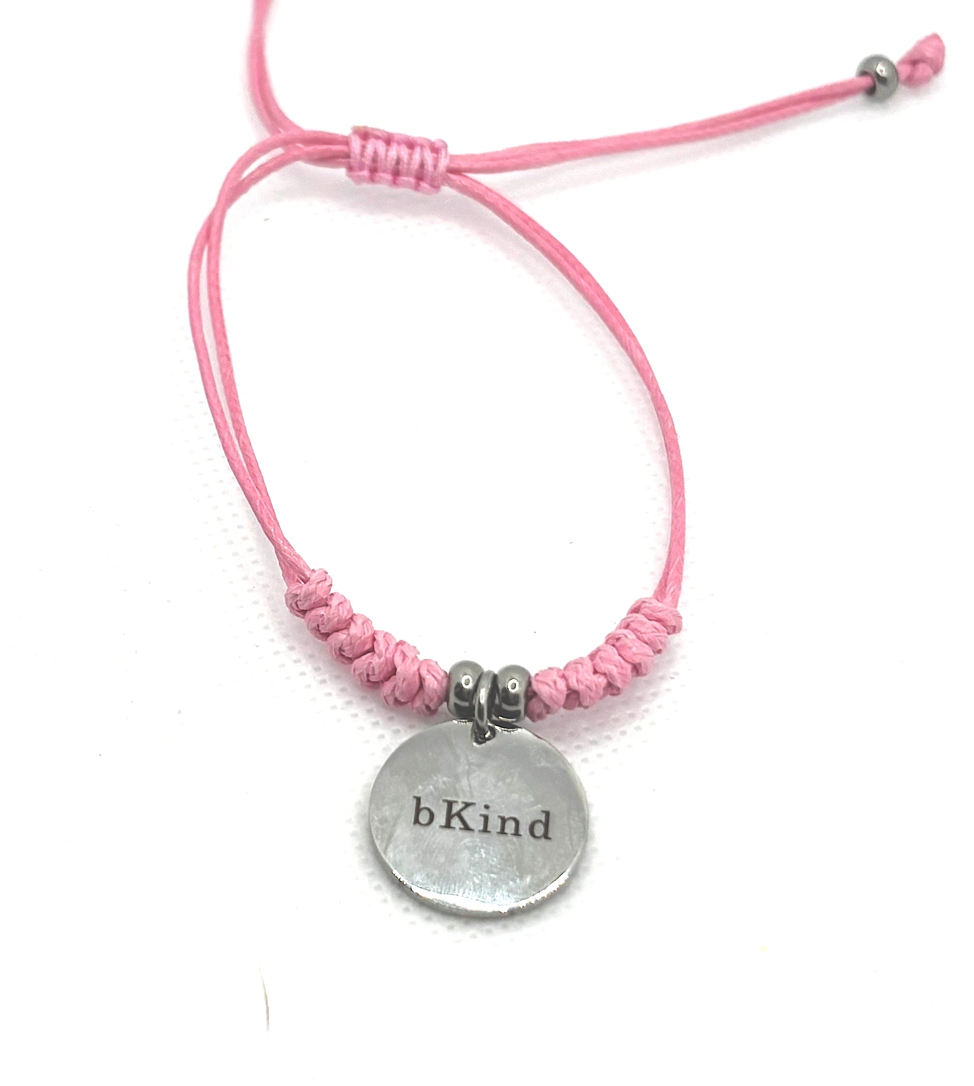 Add a touch of meaning to your everyday look with this bKind Charm Bracelet, crafted with a soft pink woven PU leather cord and a sleek silver pendant engraved with “bKind.” Designed for comfort and versatility, the fully adjustable wristband ensures a perfect fit for any wrist size.